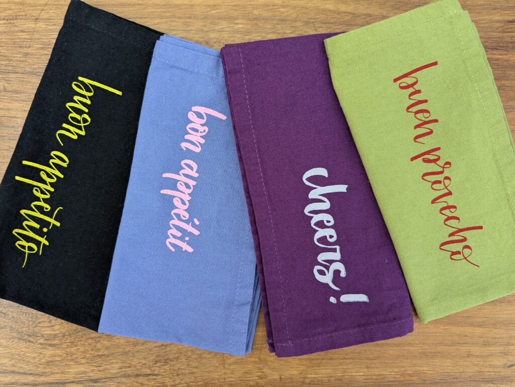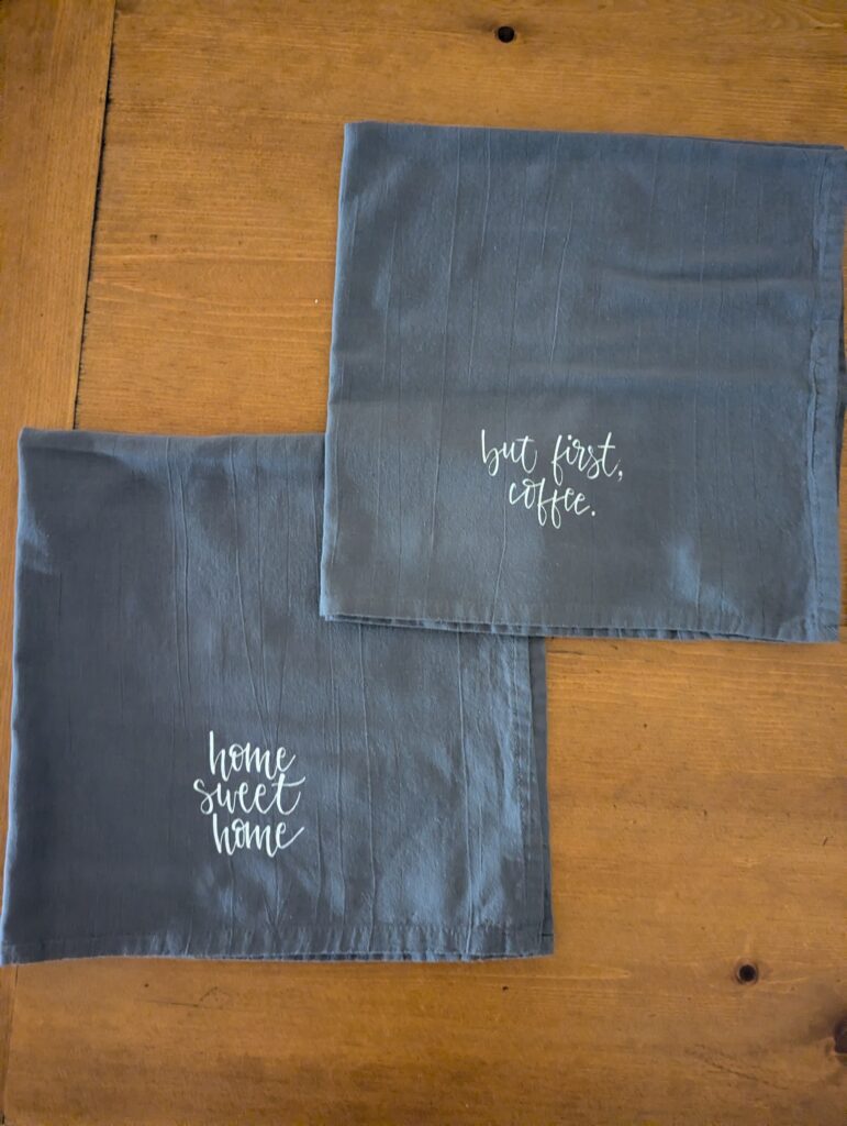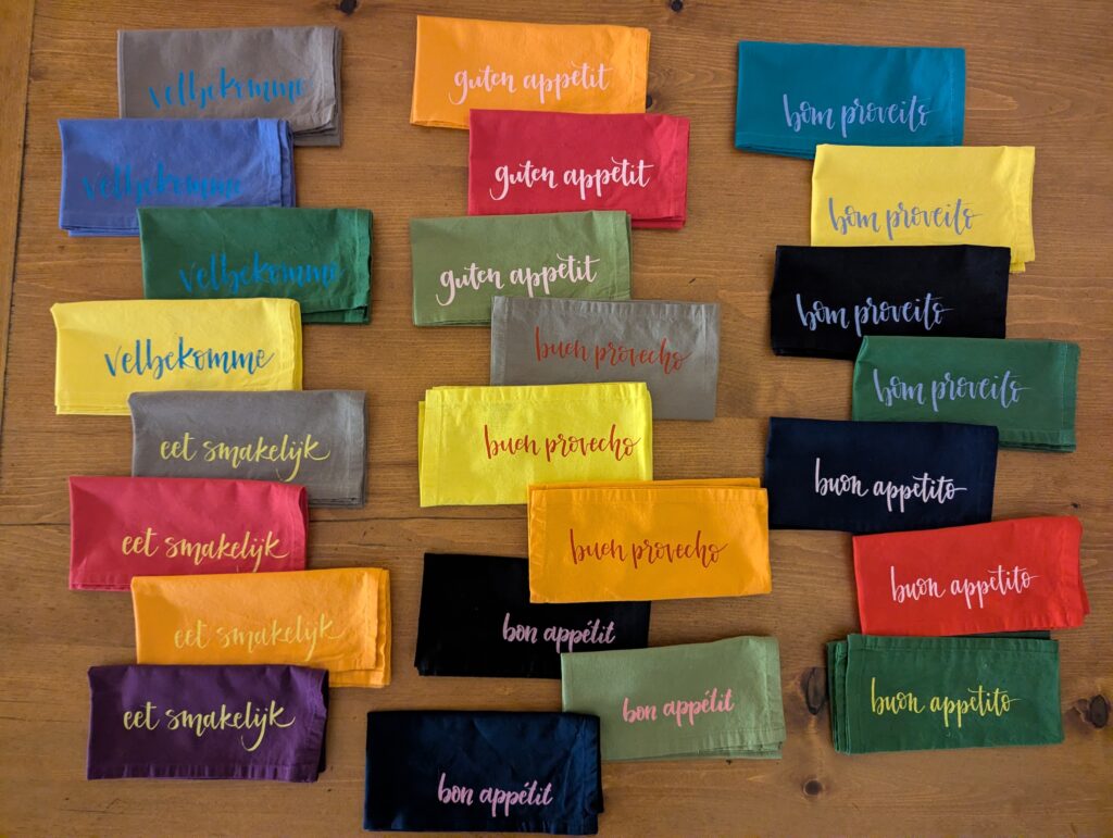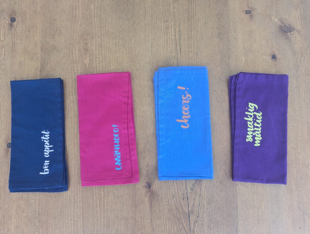 I’ve brought together my love of language and writing to create napkins and tea towels hand lettered and silkscreen printed by me.
